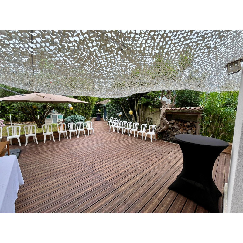 L’utilisation d’un filet de camouflage blanc pour couvrir des espaces tels qu’une terrasse, un coin repas ou un espace détente permet de bloquer efficacement les rayons du soleil tout en assurant une bonne circulation de l’air. Cette ventilation naturelle garantit une température agréable et un confort optimal dans l’espace ombragé, sans compromettre le style ou l’esthétique de votre aménagement extérieur. Grâce à sa structure légère et souple, le filet se manipule et s'installe facilement, ce qui en fait un choix pratique pour créer rapidement des zones de repos protégées du soleil. Outre sa fonction d’ombrage, les filets de camouflage renforcés sont également un excellent choix pour habiller des clôtures, des portails ou même des murs, offrant ainsi une solution élégante pour préserver l’intimité de votre jardin. Ce filet ajoute une touche lumineuse et épurée à l’espace tout en masquant des éléments que l’on souhaite dissimuler ou en améliorant l’esthétique des clôtures existantes. Durable et résistant aux intempéries, il représente un investissement fiable pour aménager et personnaliser les espaces extérieurs en répondant à la fois à des objectifs fonctionnels et décoratifs.
